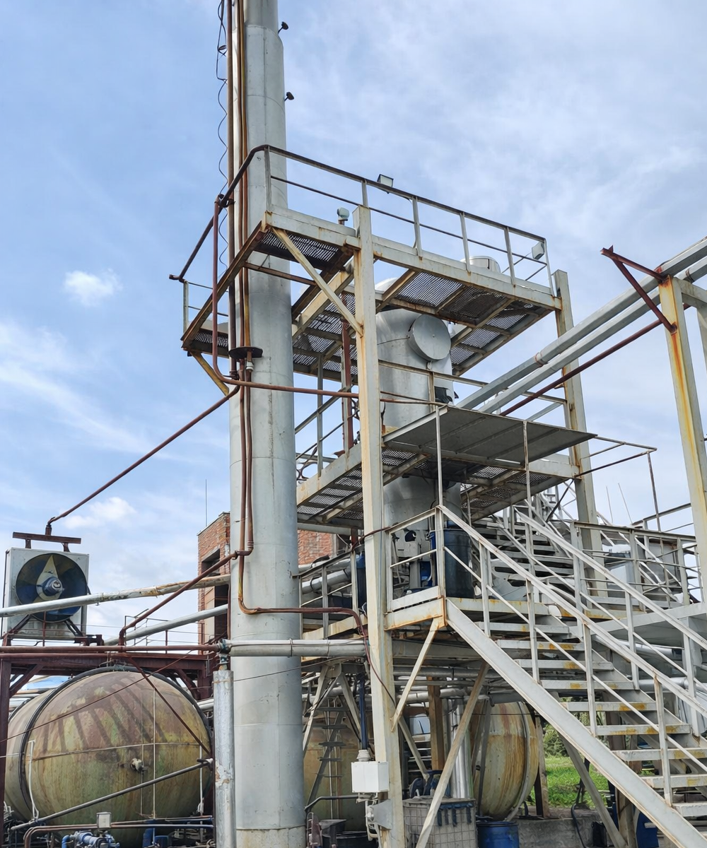 Пары лёгких углеводородов и воды из верхней части колонны направляются в систему конденсации. В конденсаторе происходит охлаждение паров с образованием жидкой смеси, которая далее поступает в отстойную ёмкость (сепаратор), где происходит гравитационное расслоение на водную и углеводородную фазы. Отделённая углеводородная фракция может направляться на дальнейшее использование или переработку, а вода — на очистку или повторное использование в технологическом процессе.
